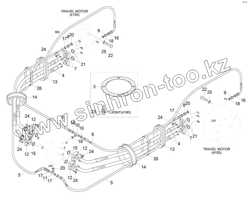 Каталог запасных частей к технике: Hyundai R180LC-9S. TRAVEL HYD PIPING 1 (R180LCD-9S)