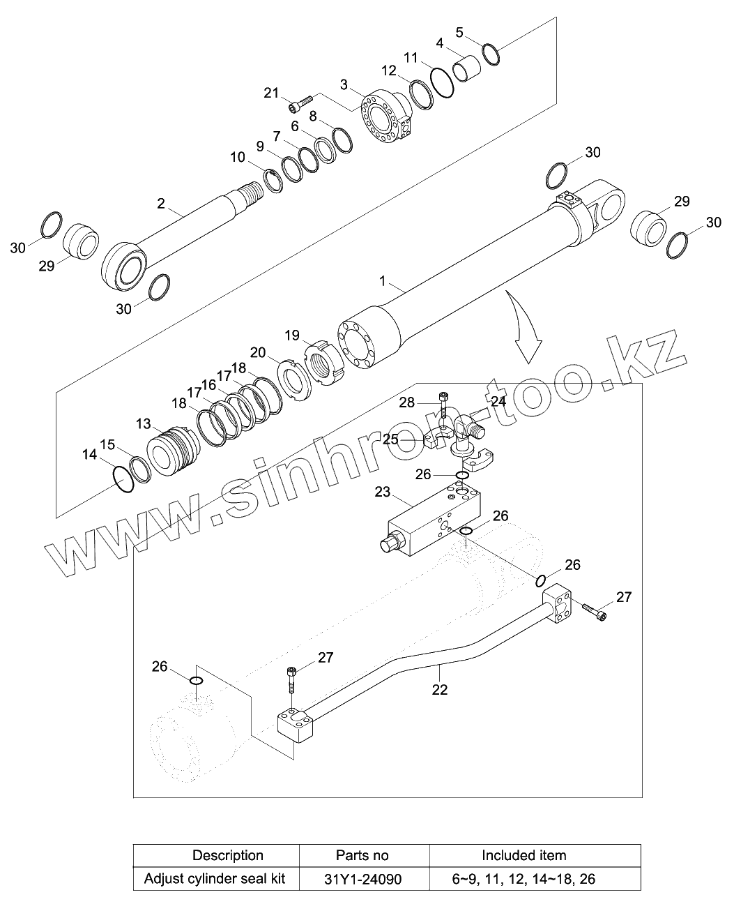 Каталог запасных частей к технике: Hyundai R180W-9S. ADJUST CYLINDER