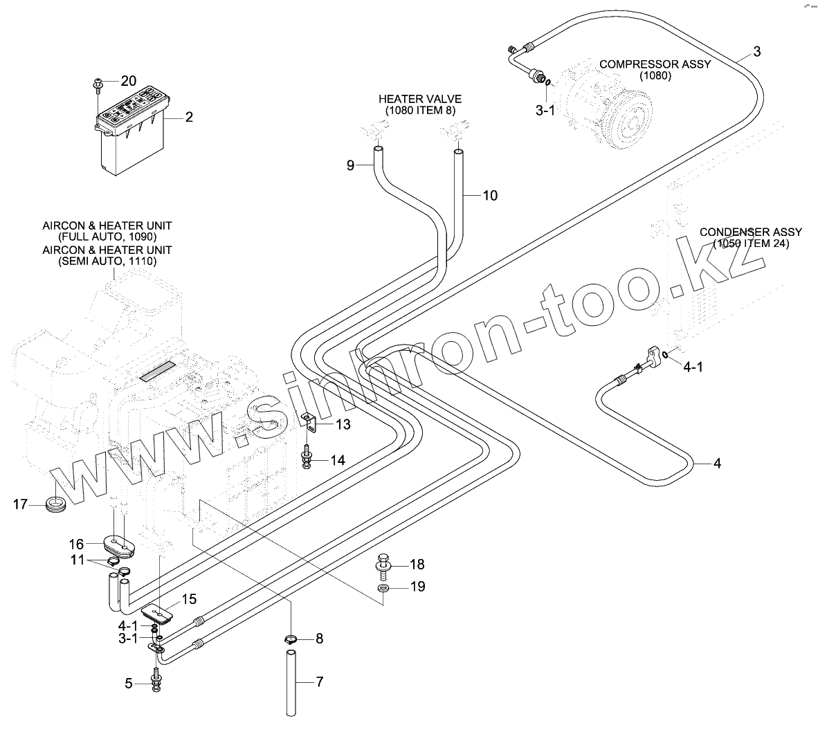 Каталог запасных частей к технике: Hyundai R180W-9S. AIR CONDITIONER BOTTOM SUB