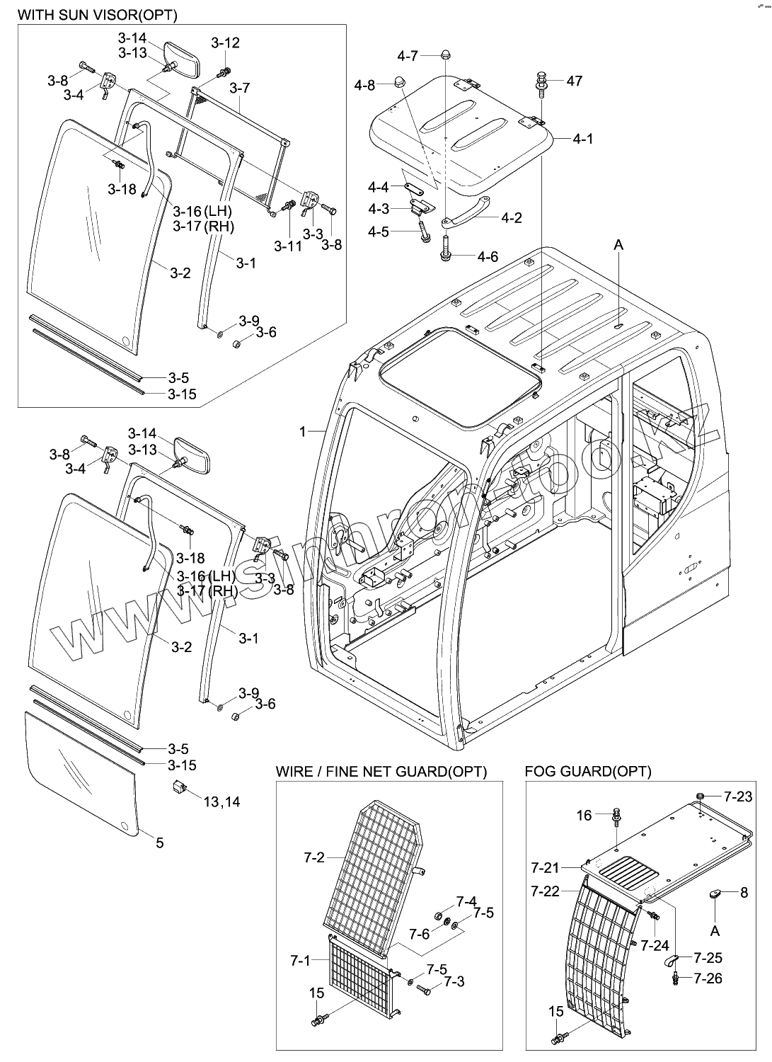 Каталог запасных частей к технике: Hyundai R180W-9S. CAB ASSY (1/4)