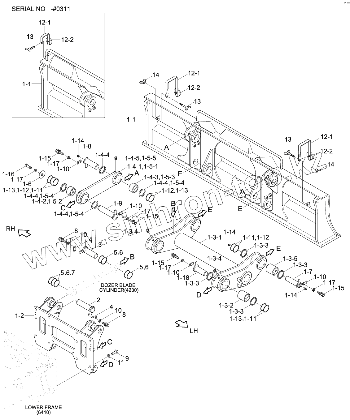 Каталог запасных частей к технике: Hyundai R180W-9S. DOZER BLADE-REAR