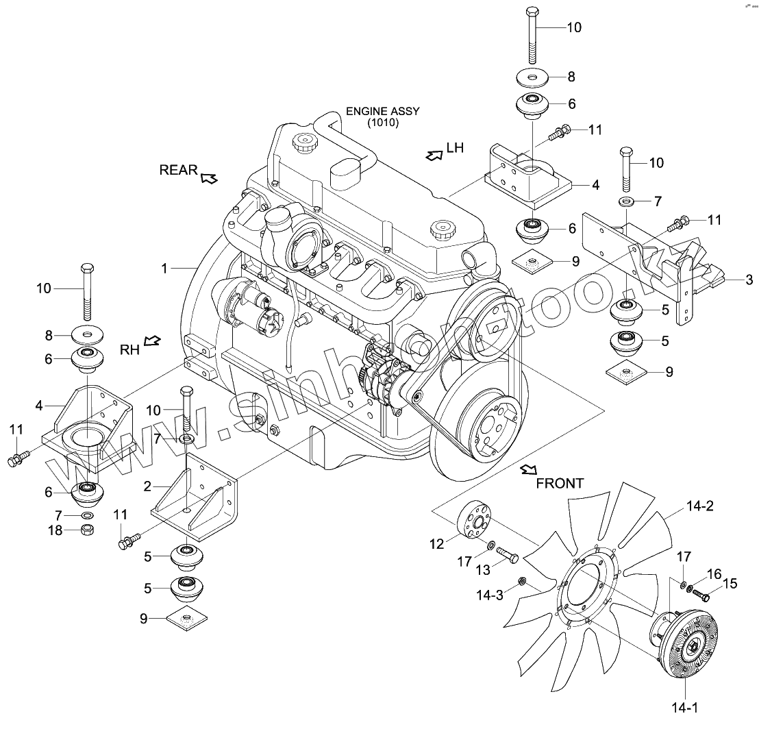 Каталог запасных частей к технике: Hyundai R180W-9S. ENGINE MOUNTING