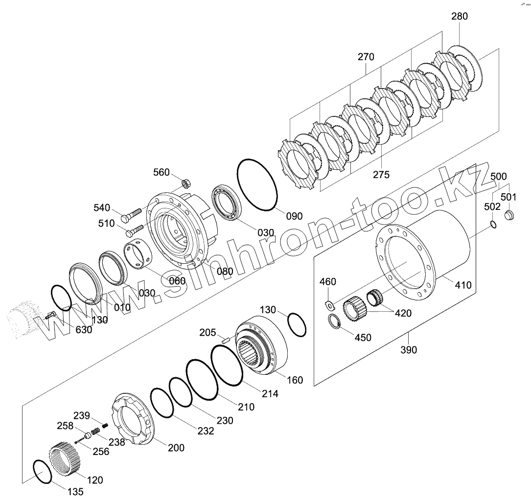 Каталог запасных частей к технике: Hyundai R180W-9S. FRONT AXLE OUTPUT GROUP (#0426-)