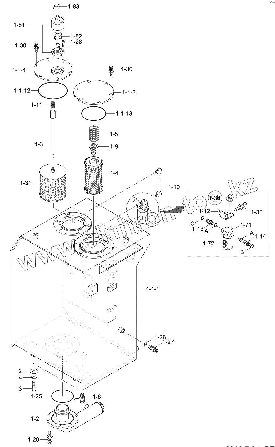 Каталог запасных частей к технике: Hyundai R180W-9S. HYDRAULIC TANK