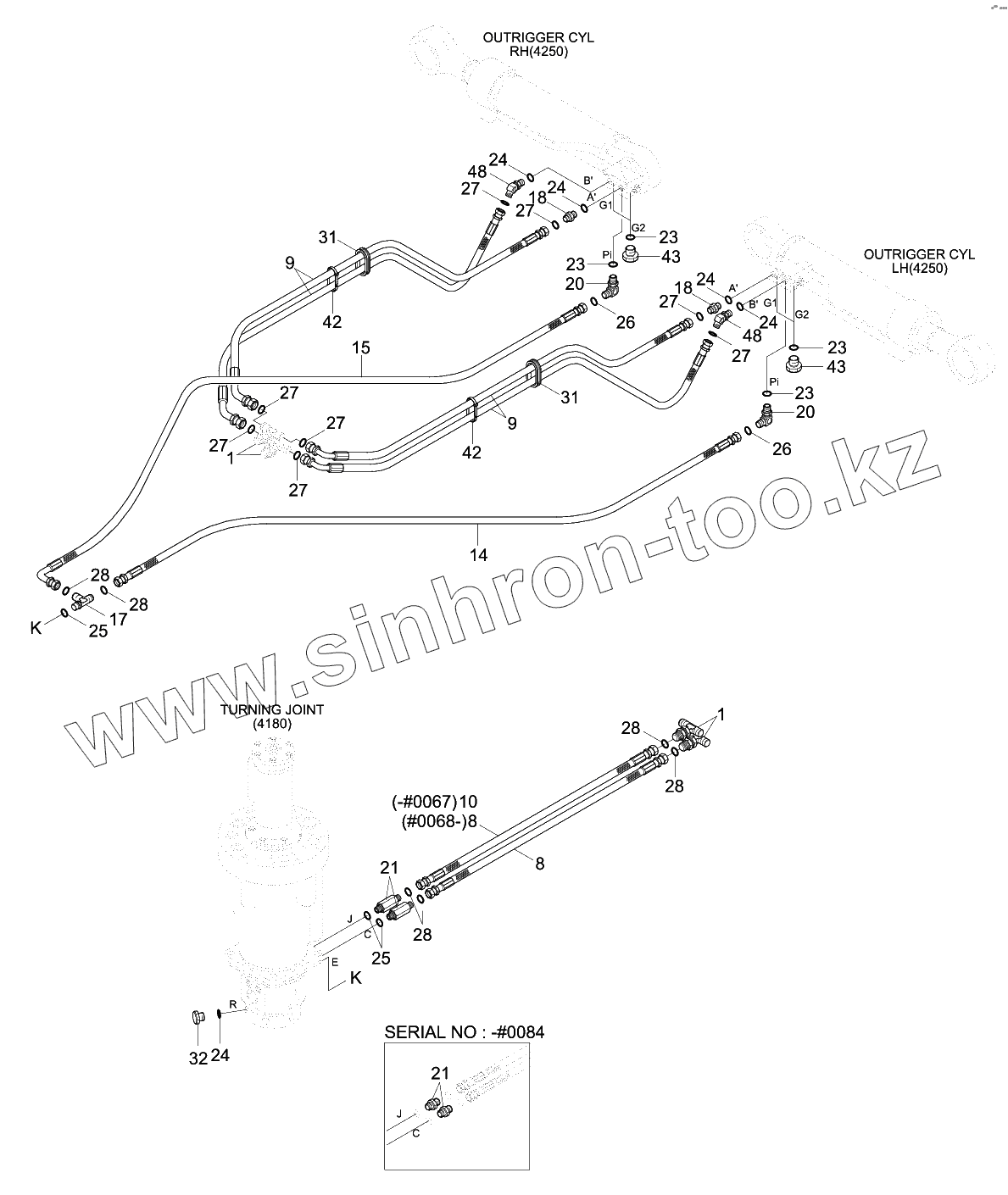 LOWER HYD PIPING (2-OUTRIGGER, #0067-)