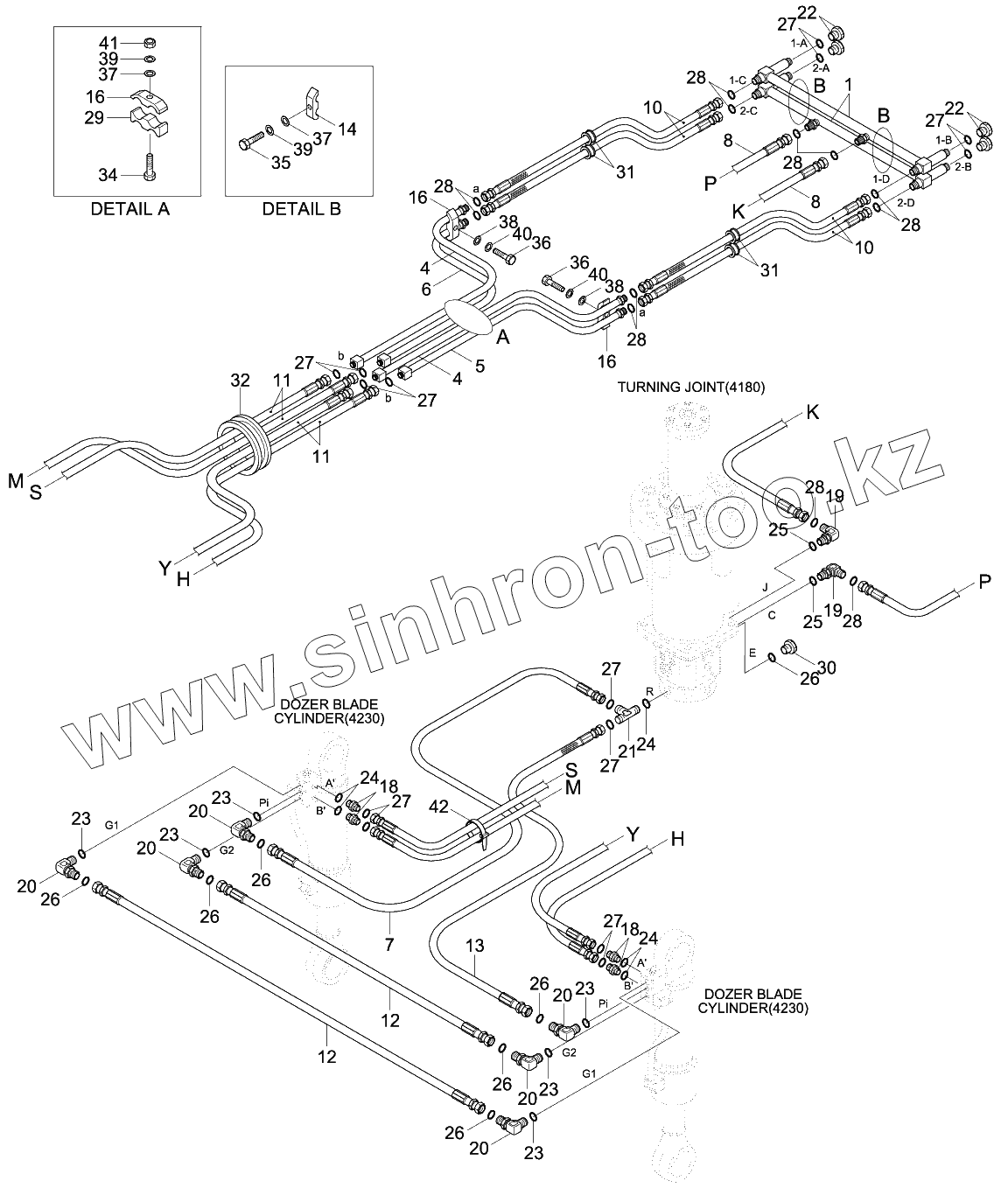 Каталог запасных частей к технике: Hyundai R180W-9S. LOWER HYD PIPING (FRONT BLADE)