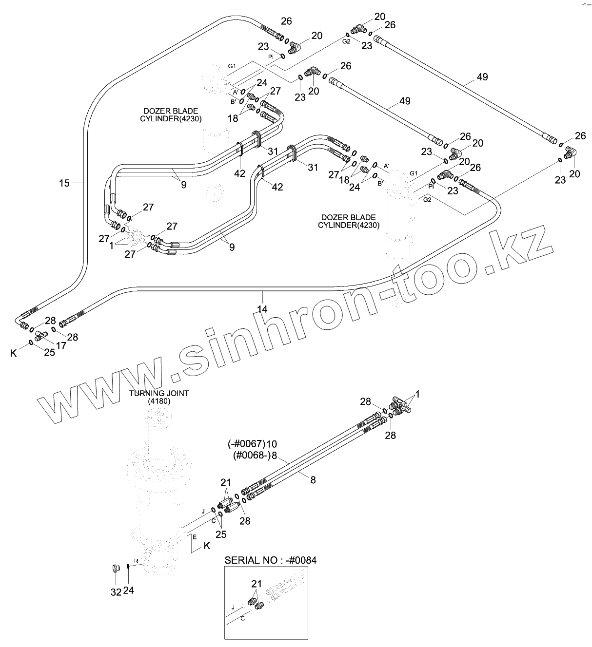 Каталог запасных частей к технике: Hyundai R180W-9S. LOWER HYD PIPING (REAR BLADE, #0067-)