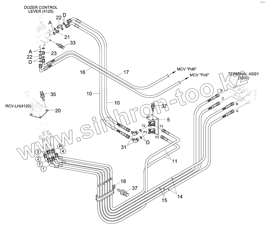 Каталог запасных частей к технике: Hyundai R180W-9S. PILOT HYD PIPING (BOTTOM 1)