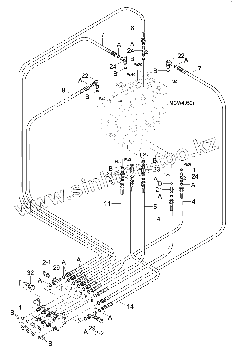 Каталог запасных частей к технике: Hyundai R180W-9S. PILOT HYD PIPING (CONTROL 1)