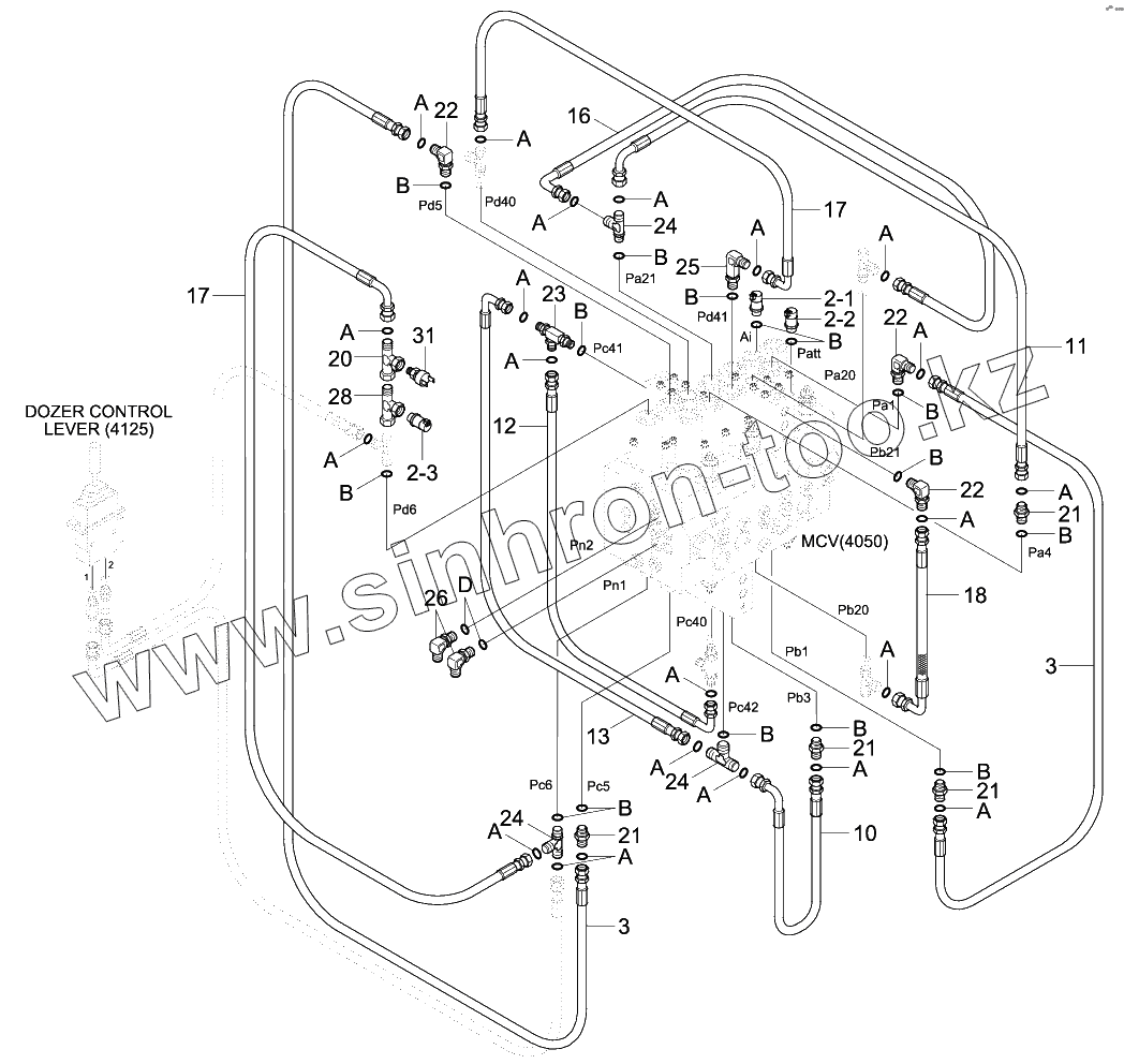 Каталог запасных частей к технике: Hyundai R180W-9S. PILOT HYD PIPING (CONTROL 2)