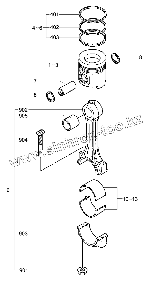 Каталог запасных частей к технике: Hyundai R180W-9S. PISTON & CONNECTING ROD