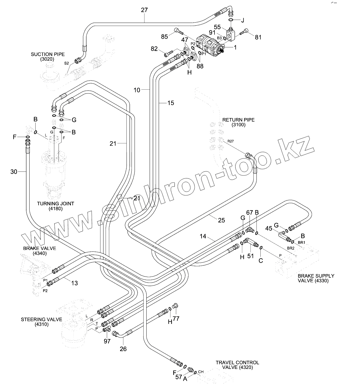 Каталог запасных частей к технике: Hyundai R180W-9S. POWER TRAIN HYD PIPING 1