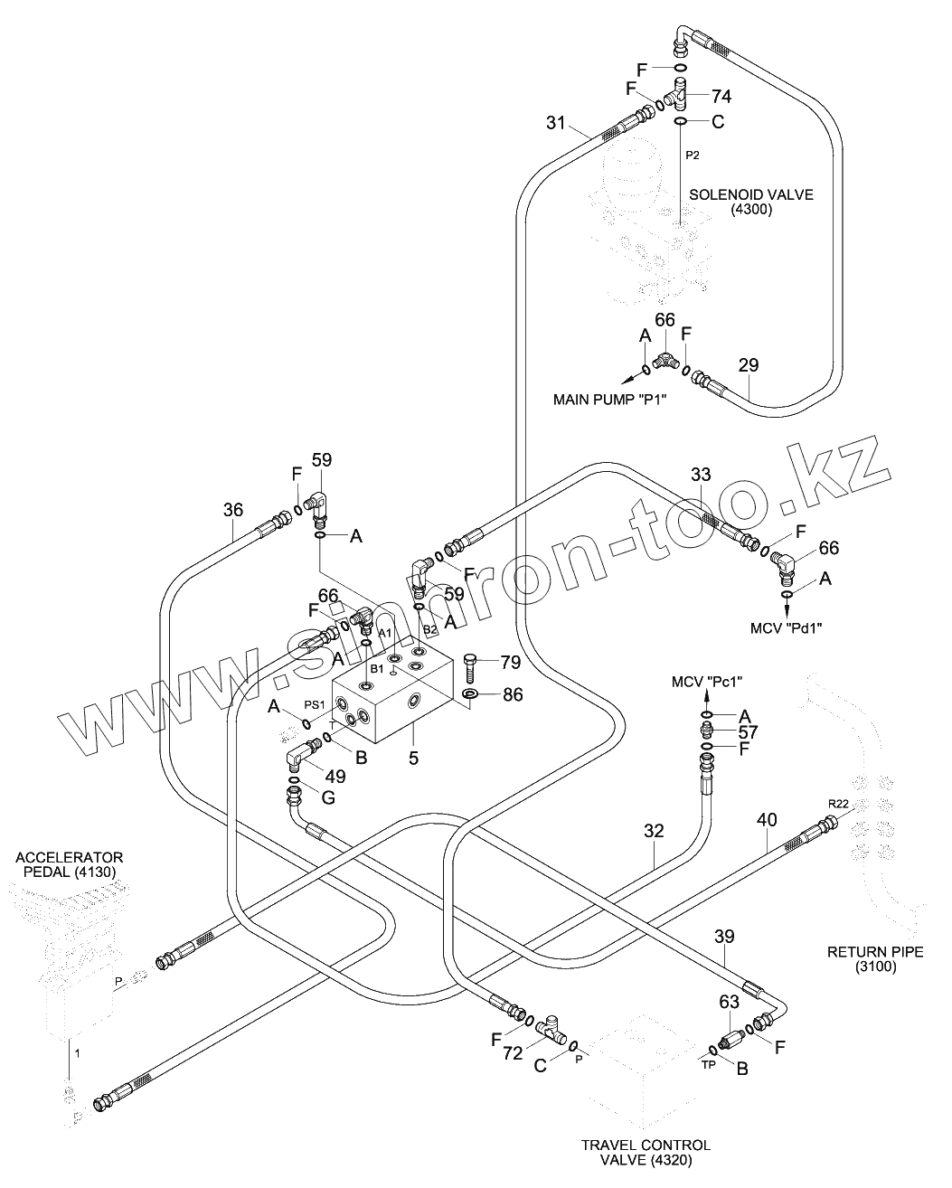 Каталог запасных частей к технике: Hyundai R180W-9S. POWER TRAIN HYD PIPING 4