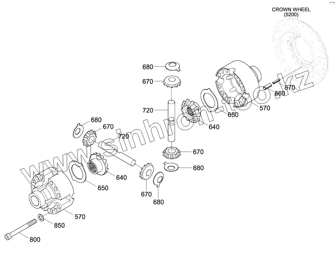 Каталог запасных частей к технике: Hyundai R180W-9S. REAR AXLE DIFFERENTIAL (-#0425)