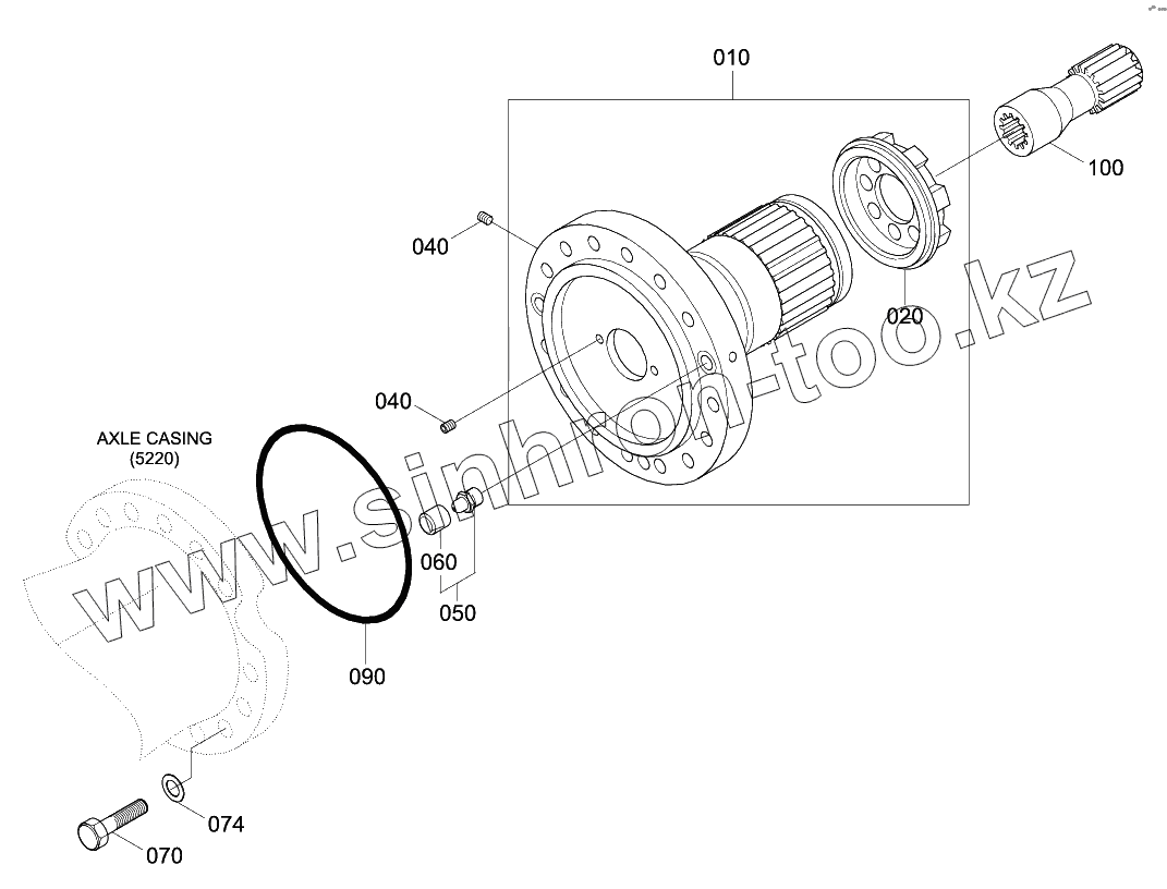 Каталог запасных частей к технике: Hyundai R180W-9S. REAR AXLE HUB CARRIER (-#0425)