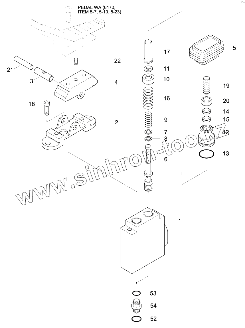 Каталог запасных частей к технике: Hyundai R180W-9S. SINGLE PEDAL (DOUBLE ACTING)