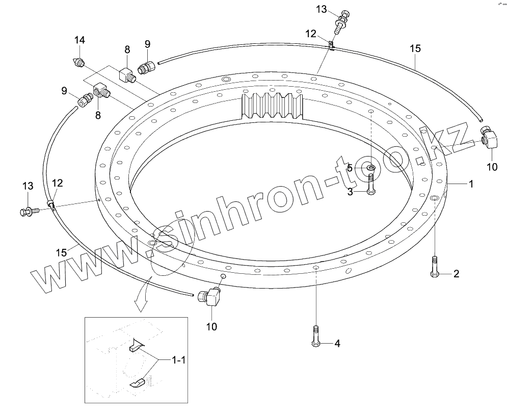 Каталог запасных частей к технике: Hyundai R180W-9S. SWING RING GREASE LUB SYSTEM