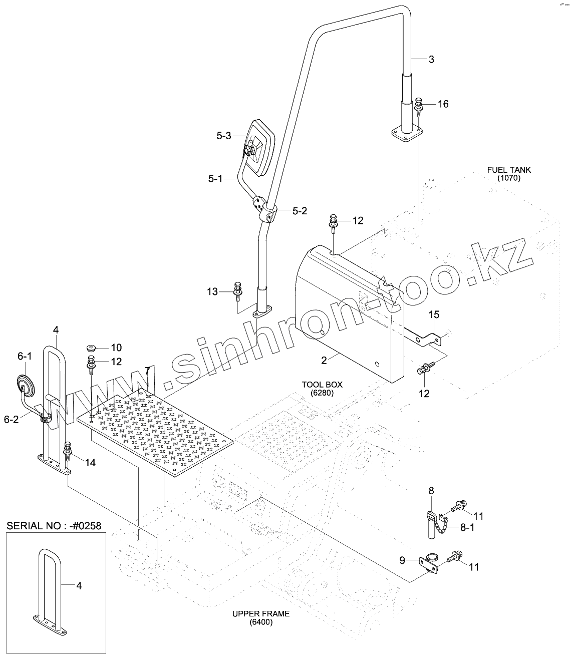 Каталог запасных частей к технике: Hyundai R180W-9S. TOOL BOX MOUNTING