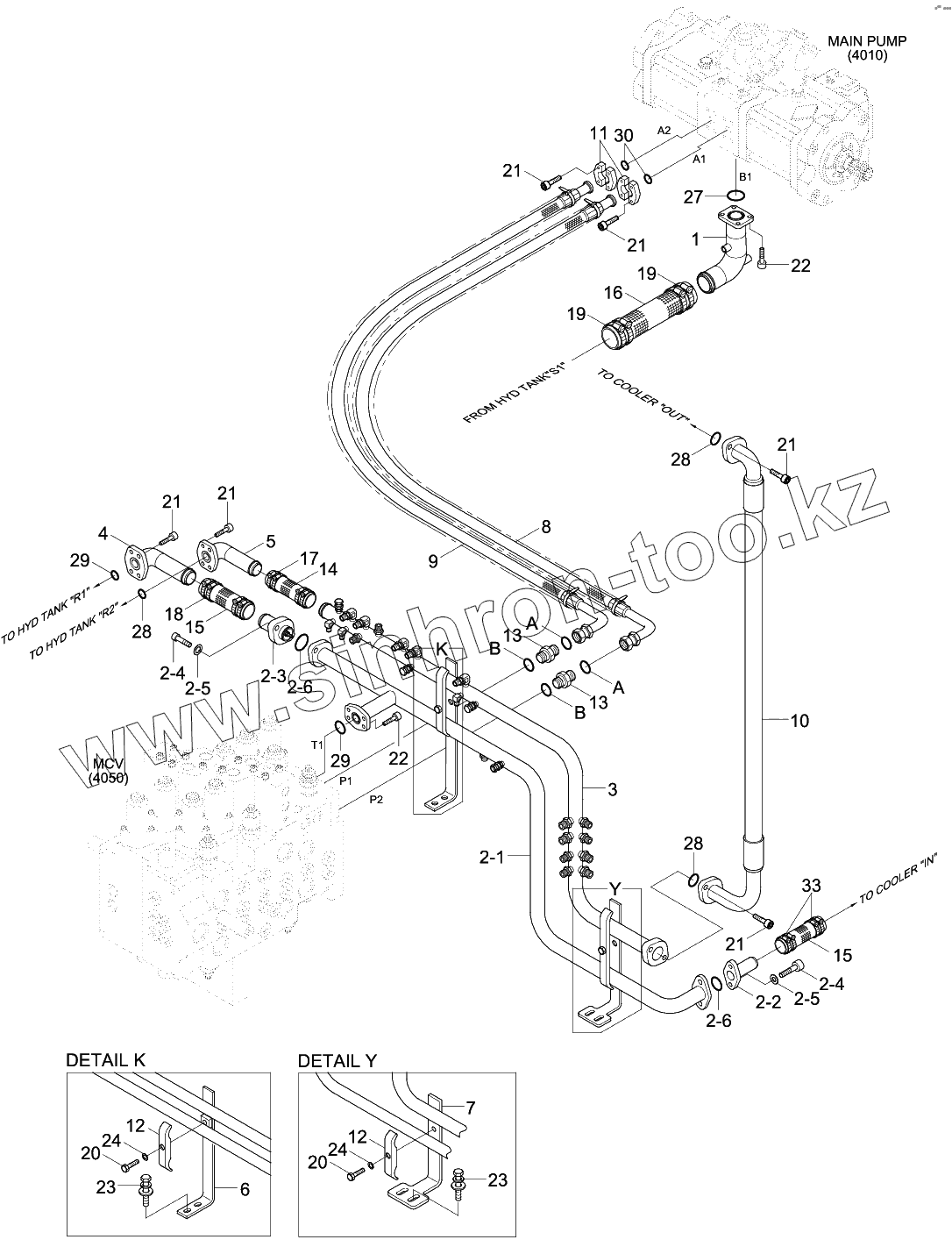 Каталог запасных частей к технике: Hyundai R180W-9S. UPPER HYD PIPING (BASE)
