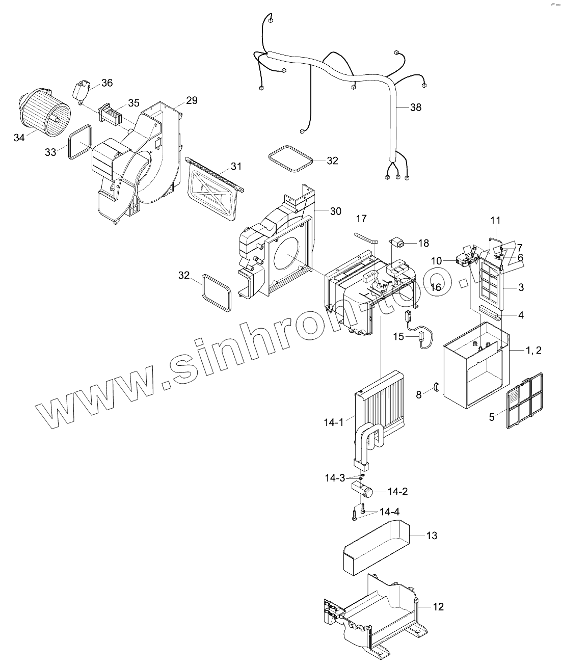 Каталог запасных частей к технике: Hyundai R210LC-9. AIR CONDITIONER UNIT (SEMI AUTO)