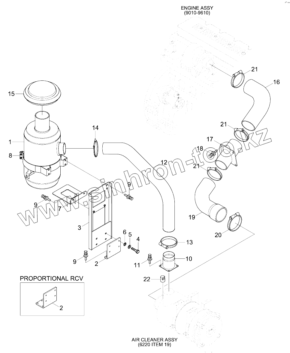 Каталог запасных частей к технике: Hyundai R210LC-9. AIR INTAKE SYSTEM (WET, #1230-)