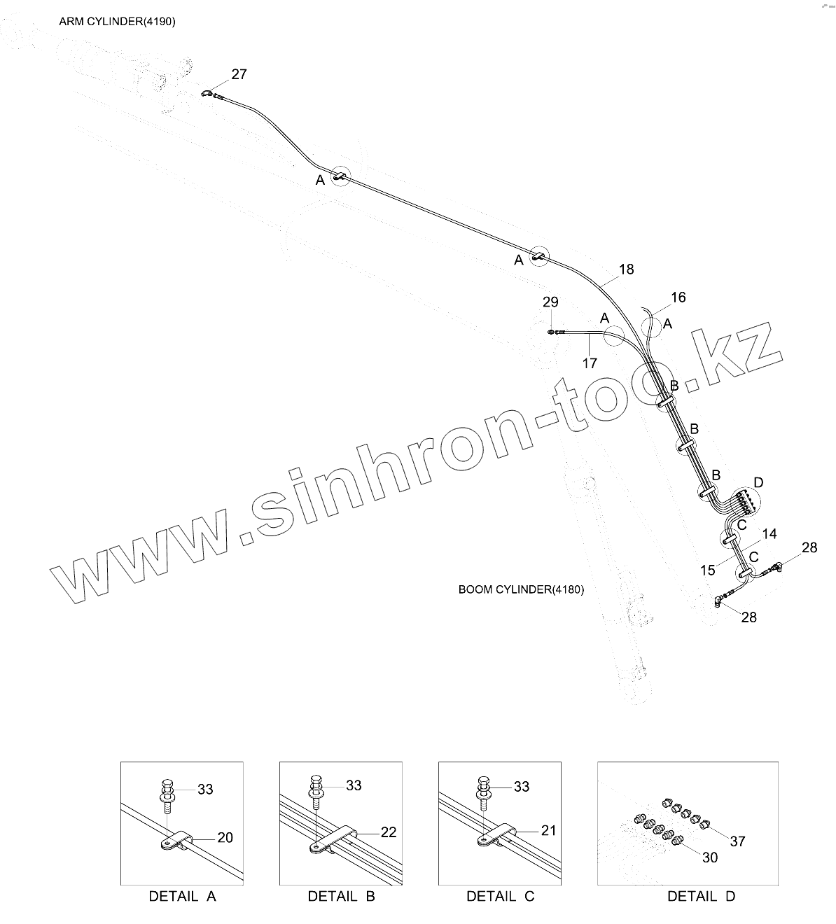 Каталог запасных частей к технике: Hyundai R210LC-9. BOOM GREASE LUB SYSTEM (L/REACH, #0086-)