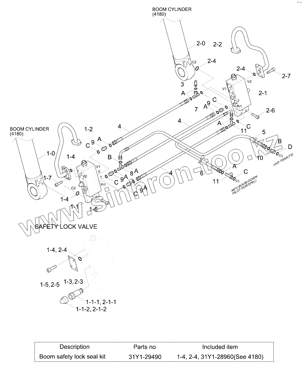 Каталог запасных частей к технике: Hyundai R210LC-9. BOOM SAFETY LOCK SYSTEM