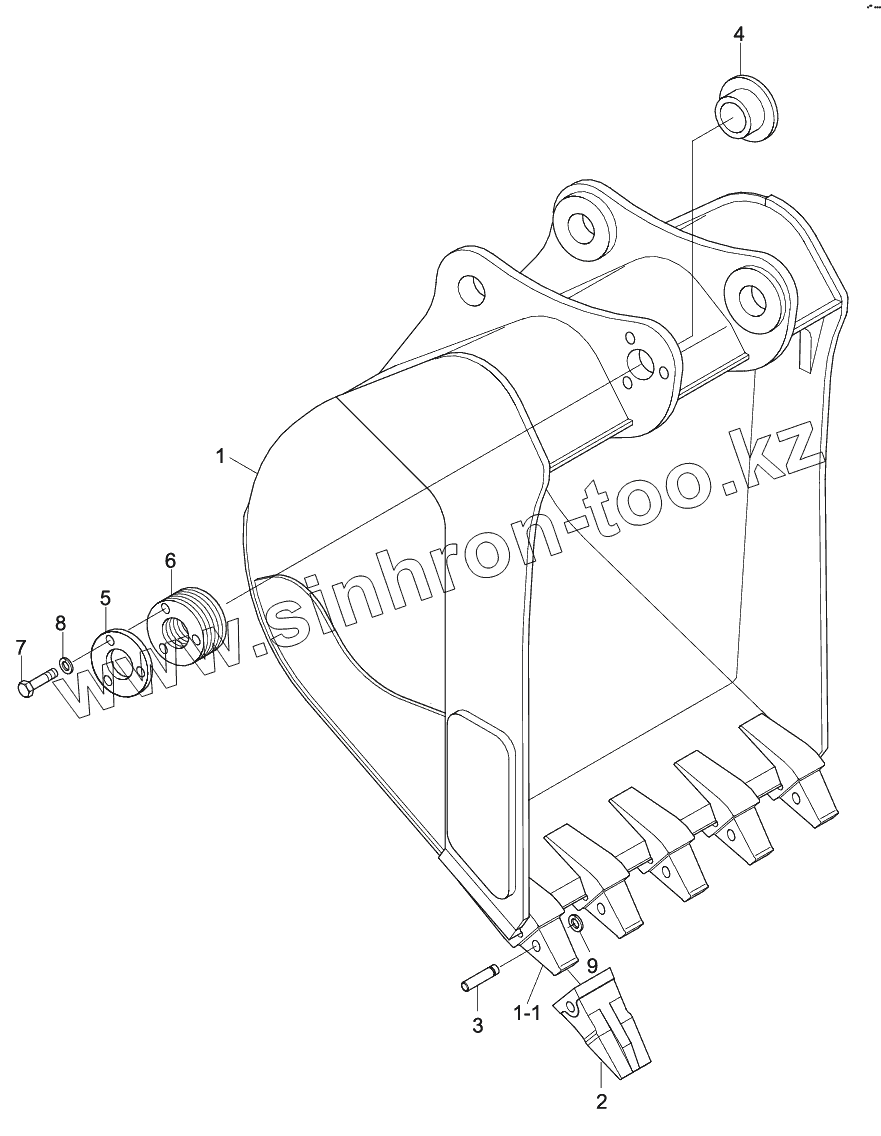 Каталог запасных частей к технике: Hyundai R210LC-9. BUCKET (0.90M3 SAE HEAPED, #0008-)