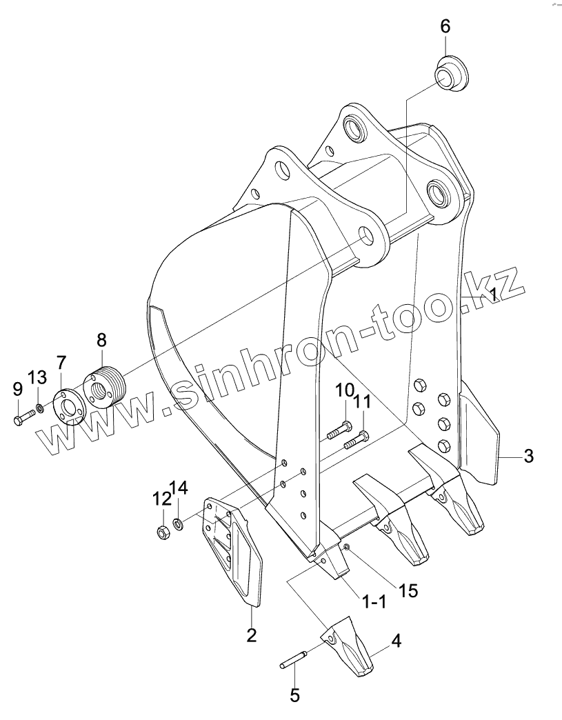 Каталог запасных частей к технике: Hyundai R210LC-9. BUCKET (3 TEETH)