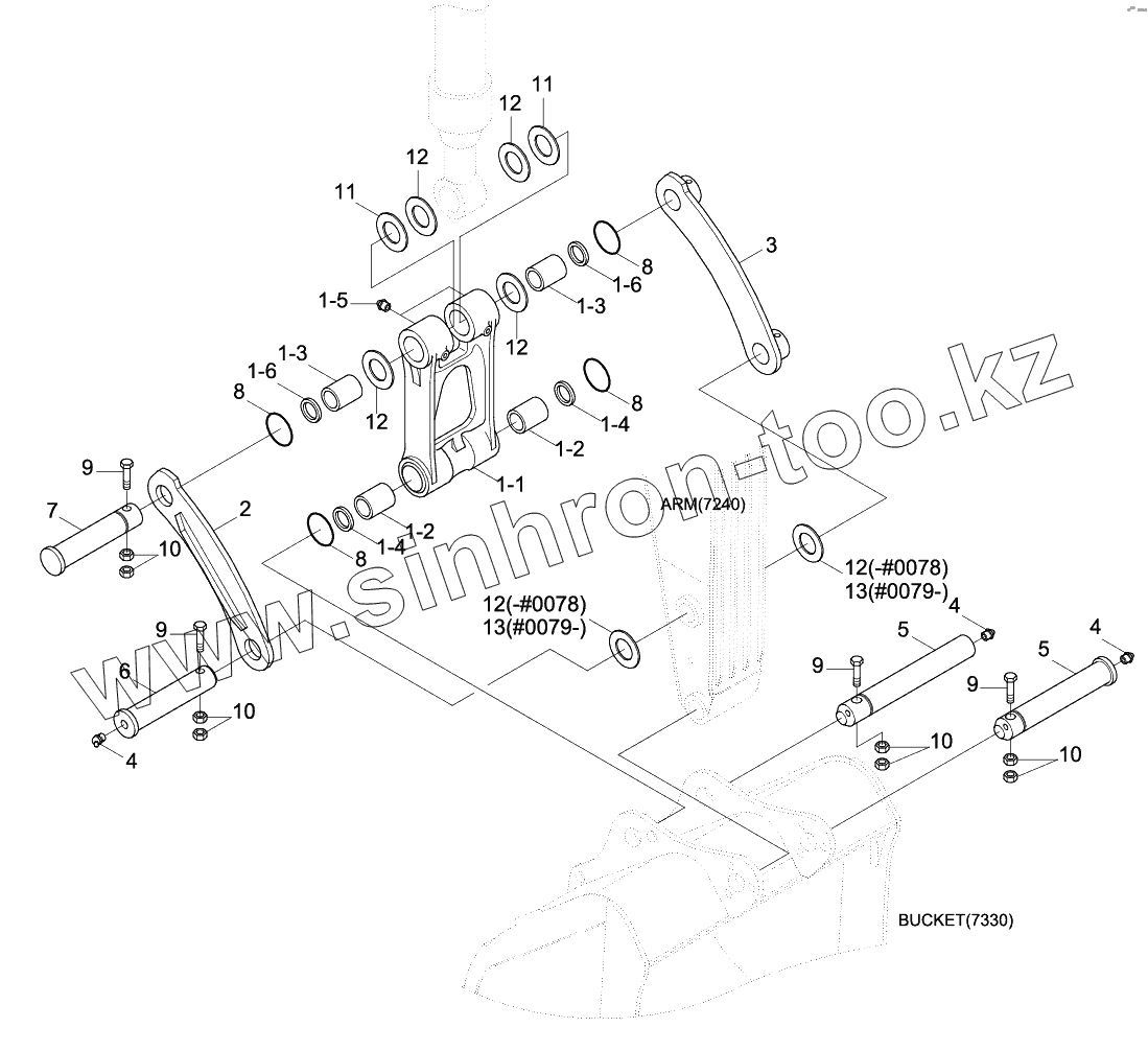 Каталог запасных частей к технике: Hyundai R210LC-9. BUCKET CONTROL GROUP (LONG REACH)