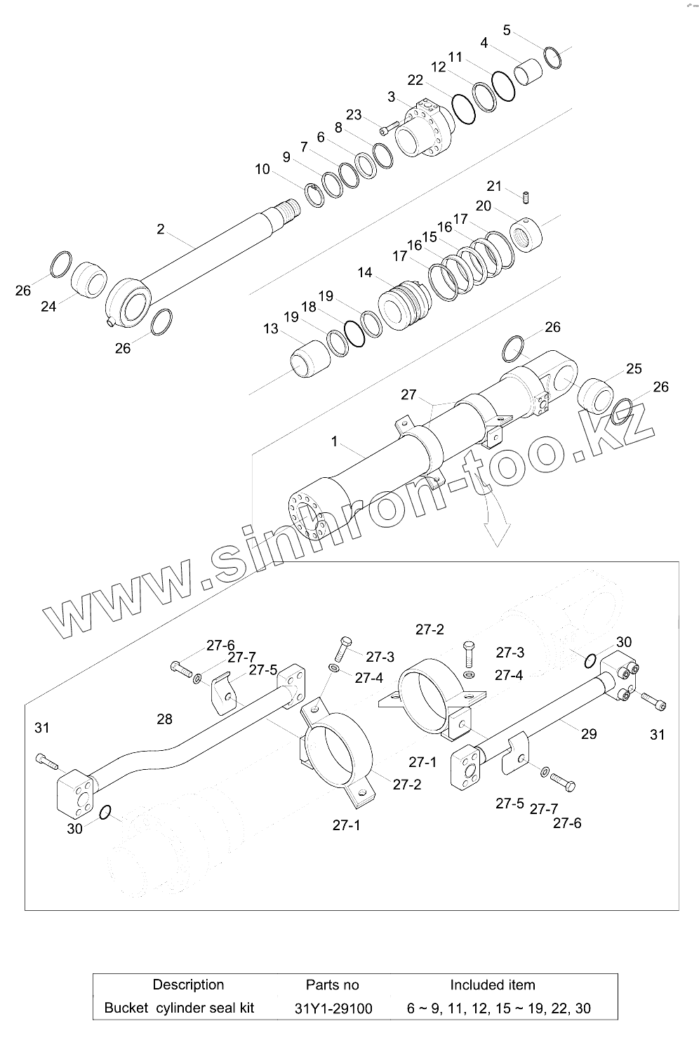 Каталог запасных частей к технике: Hyundai R210LC-9. BUCKET CYLINDER