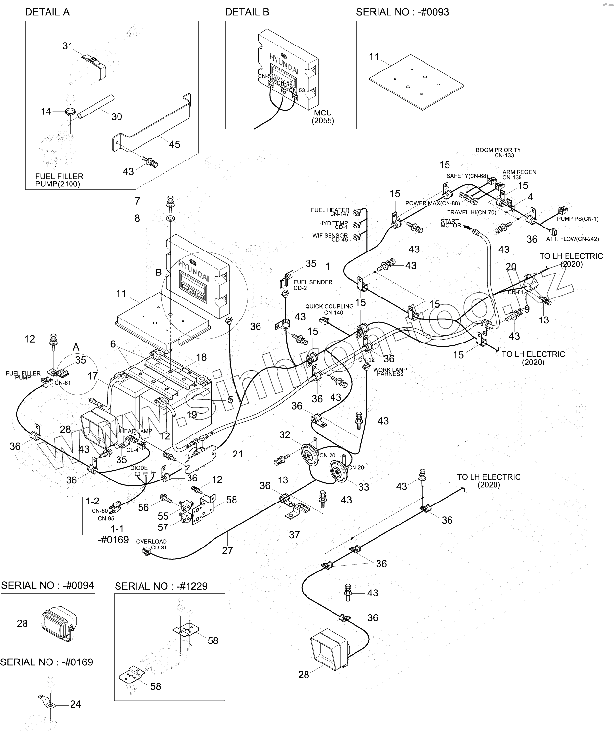 Каталог запасных частей к технике: Hyundai R210LC-9. RH ELECTRIC (#0062-)
