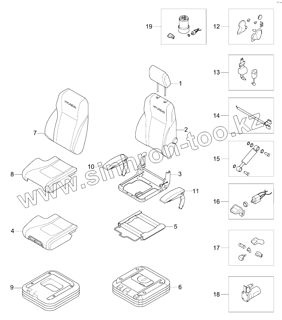 Каталог запасных частей к технике: Hyundai R210LC-9. SEAT (SUSPENSION, 2"AIR RIDE)