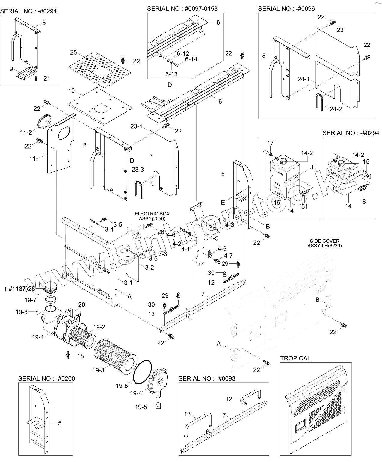 Каталог запасных частей к технике: Hyundai R210LC-9. SIDE COWL ASSY (LH)