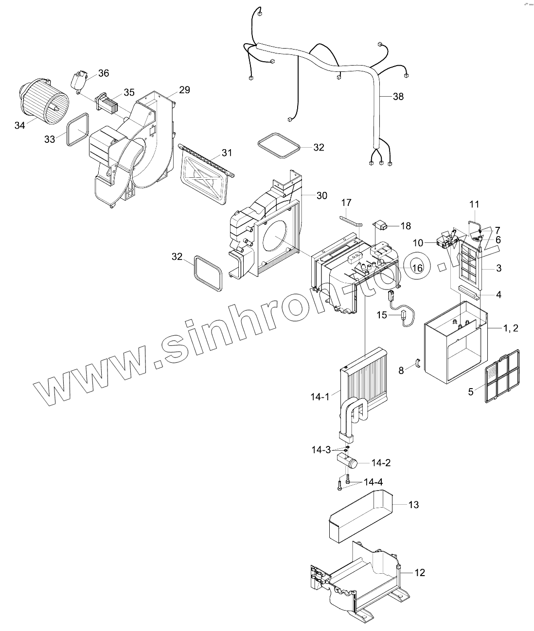 Каталог запасных частей к технике: Hyundai R210NLC-9. AIR CONDITIONER UNIT (SEMI AUTO)