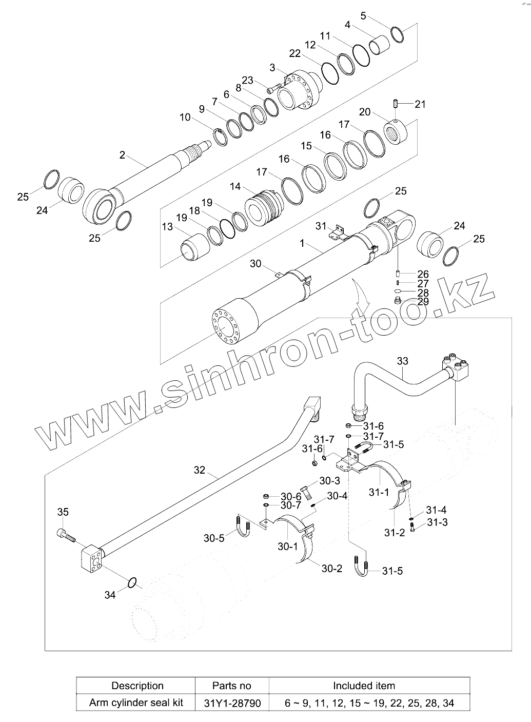 Каталог запасных частей к технике: Hyundai R210NLC-9. ARM CYLINDER (ADJUST BOOM)