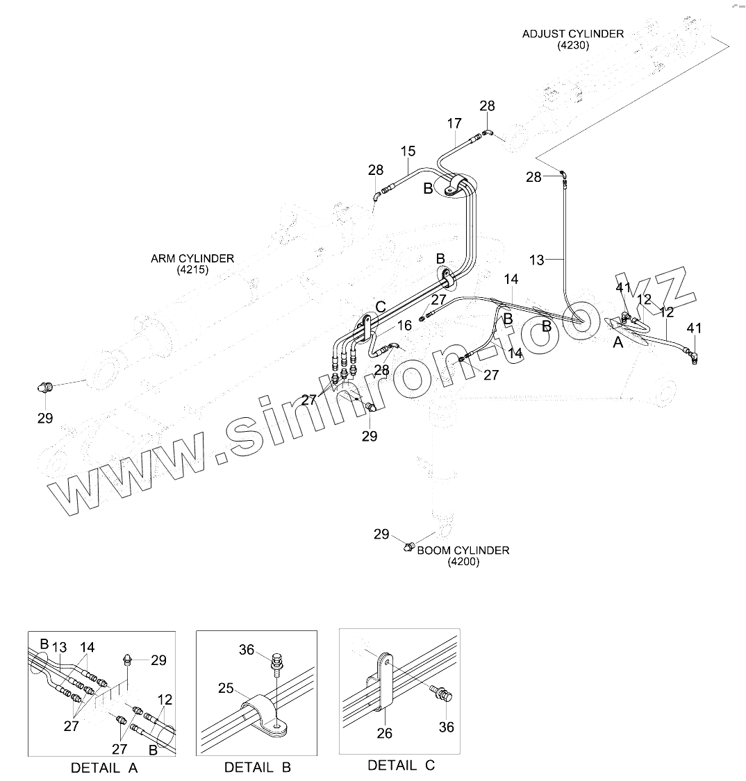 Каталог запасных частей к технике: Hyundai R210NLC-9. BOOM GREASE LUB SYSTEM (ADJUST BOOM)