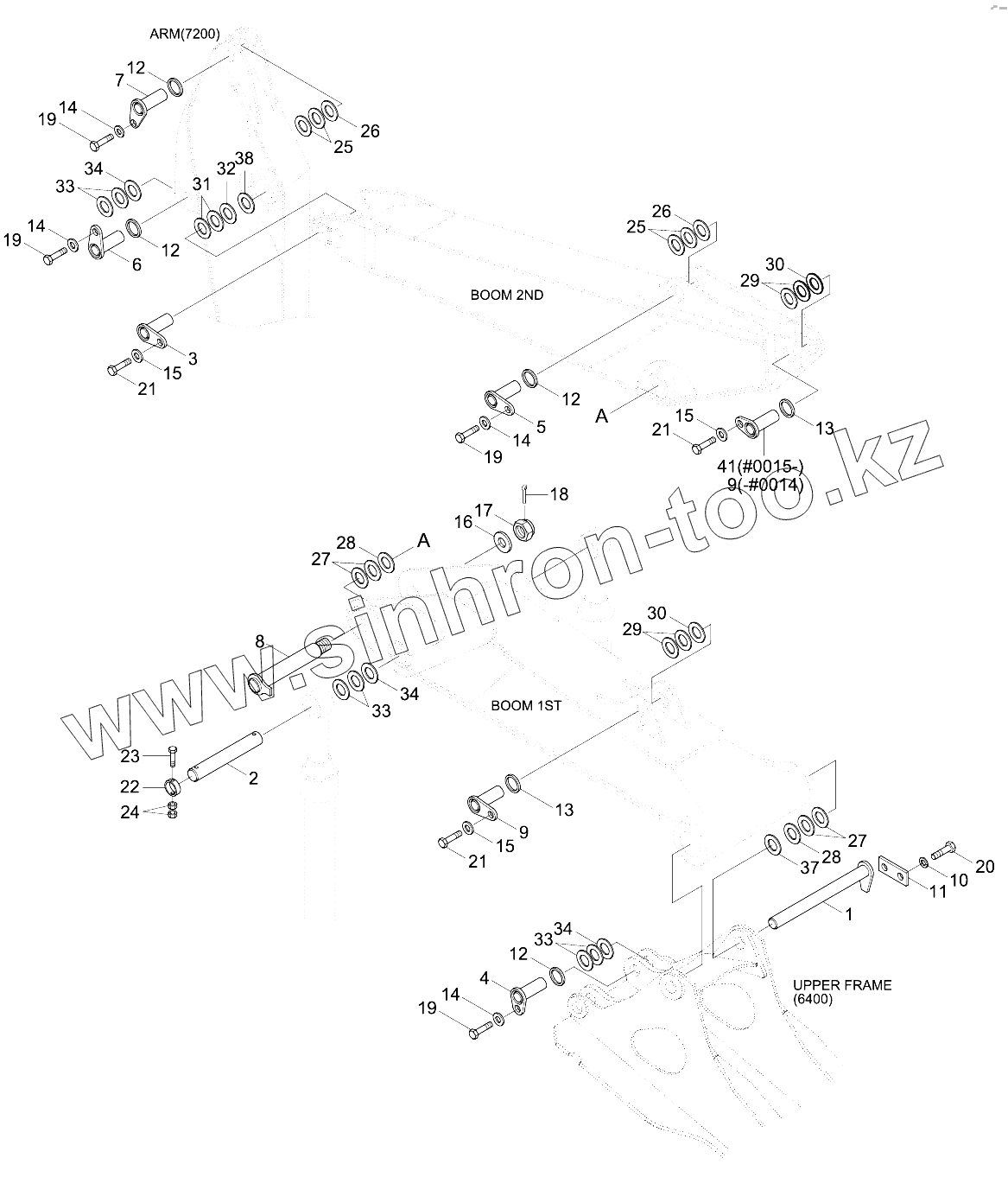 Каталог запасных частей к технике: Hyundai R210NLC-9. BOOM MOUNTING (ADJUST BOOM)