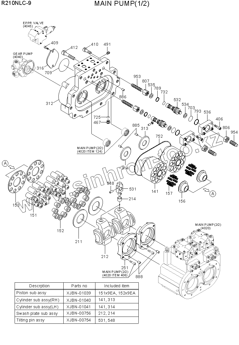 Каталог запасных частей к технике: Hyundai R210NLC-9. MAIN PUMP (1/2)