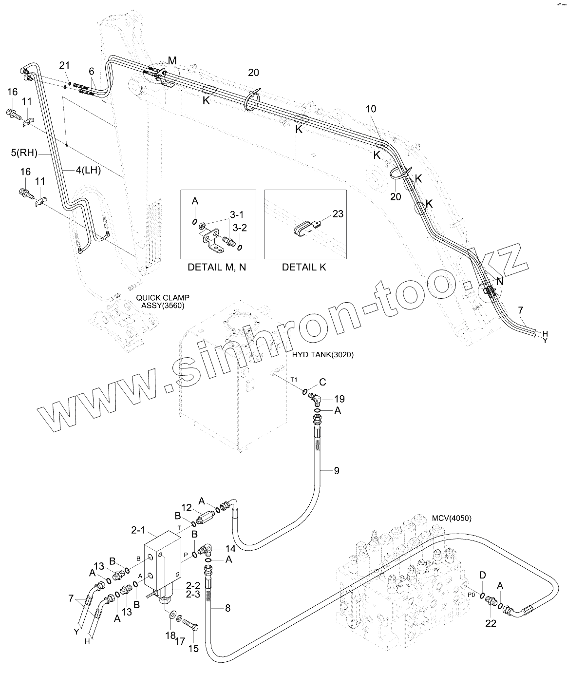 Каталог запасных частей к технике: Hyundai R210NLC-9. QUICK CLAMP PIPING