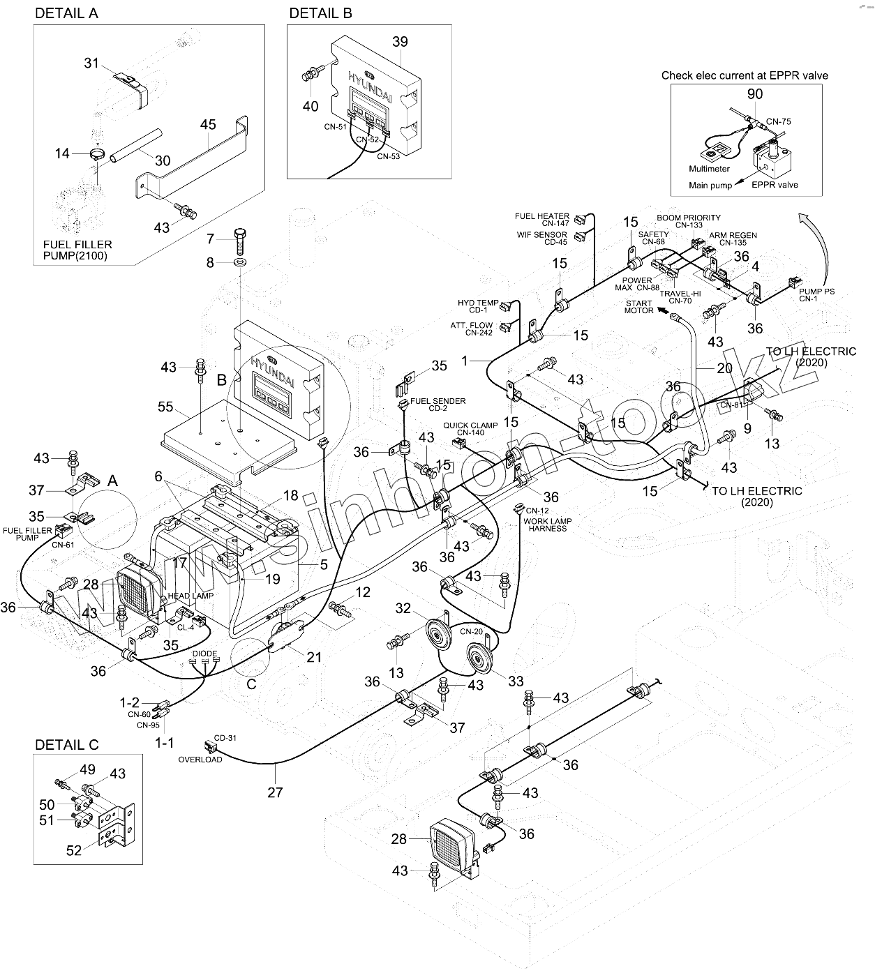 Каталог запасных частей к технике: Hyundai R210NLC-9. RH ELECTRIC