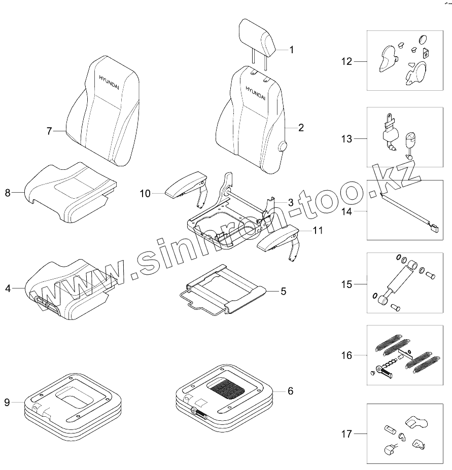 Каталог запасных частей к технике: Hyundai R210NLC-9. SEAT (SUSPENSION)