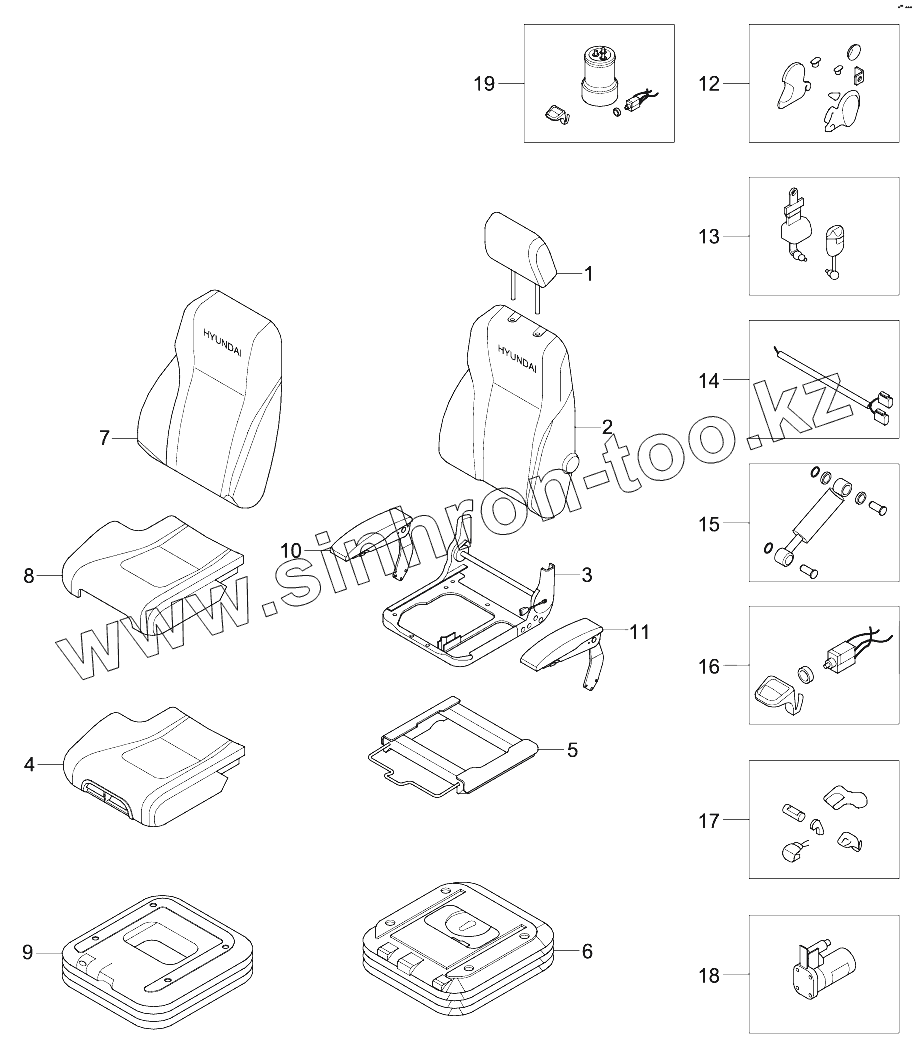 Каталог запасных частей к технике: Hyundai R210NLC-9. SEAT (SUSPENSION, 2"AIR RIDE)