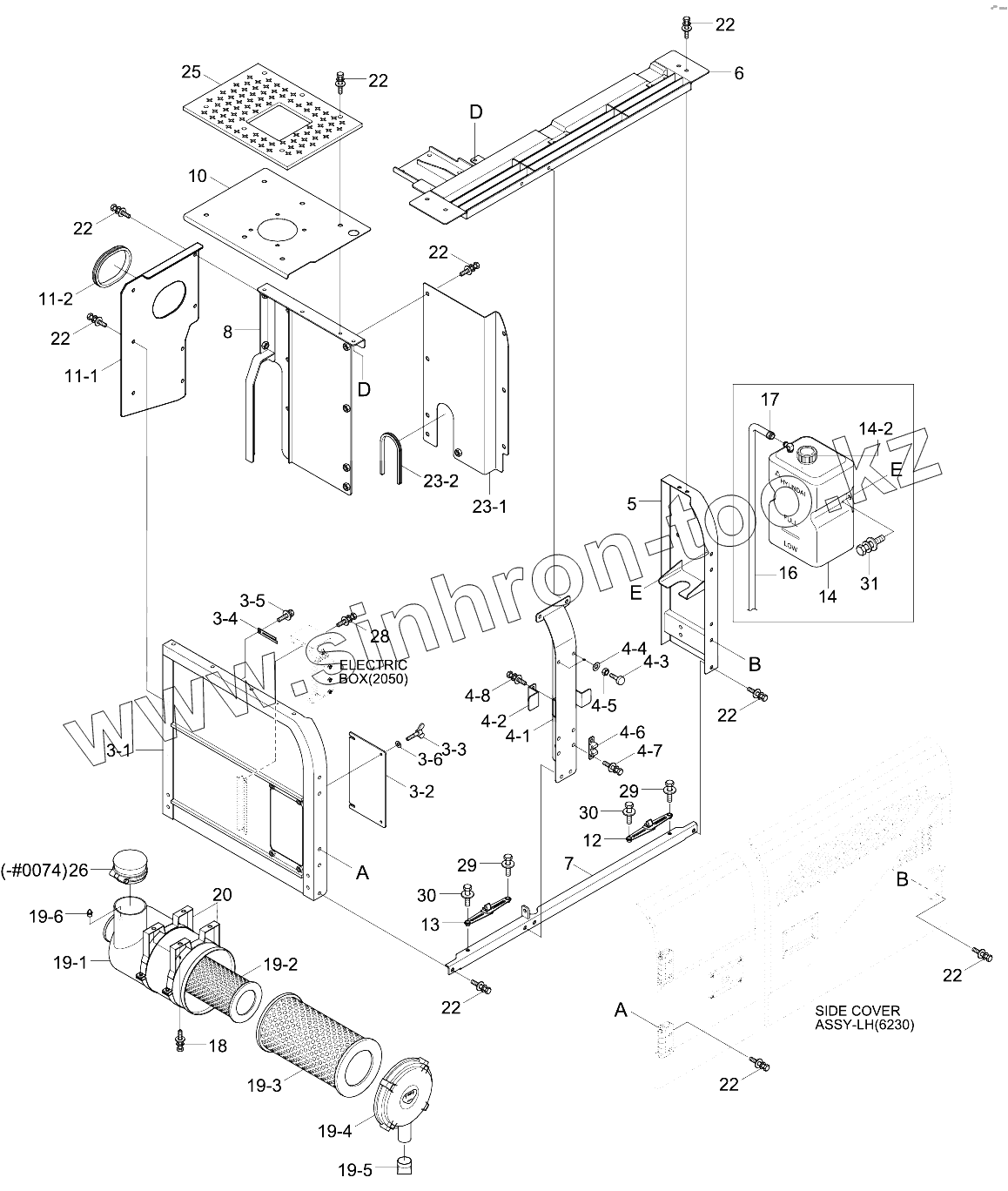 Каталог запасных частей к технике: Hyundai R210NLC-9. SIDE COWL ASSY (LH)