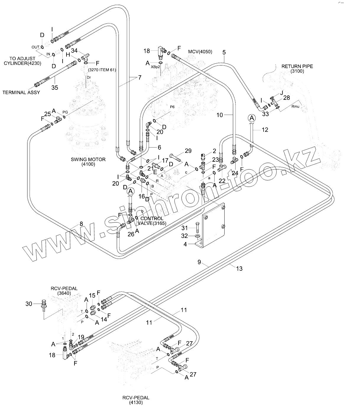 Каталог запасных частей к технике: Hyundai R210NLC-9. UPPER HYD PIPING (ADJUST BOOM)