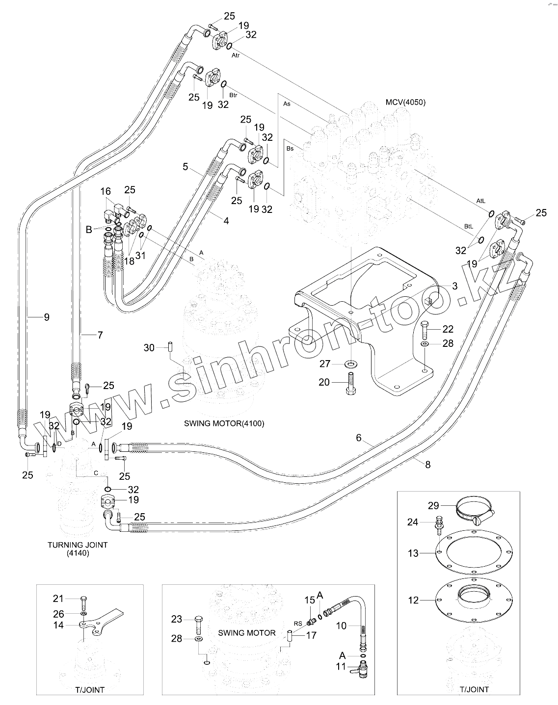 Каталог запасных частей к технике: Hyundai R210NLC-9. UPPER HYD PIPING (TRAVEL)