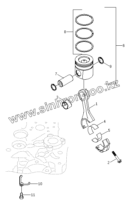 Каталог запасных частей к технике: Hyundai R210W-9. A370 CONNECTING ROD AND PISTON