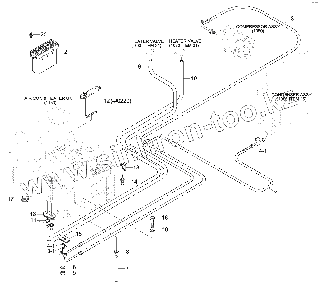 Каталог запасных частей к технике: Hyundai R210W-9. AIR CONDITIONER BOTTOM SUB