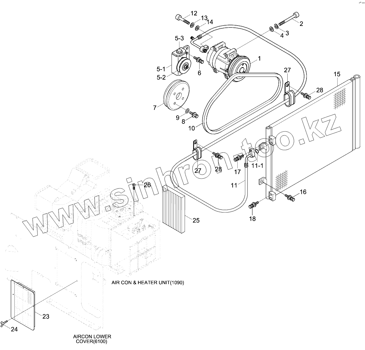 Каталог запасных частей к технике: Hyundai R210W-9. AIR CONDITIONER MOUNTING