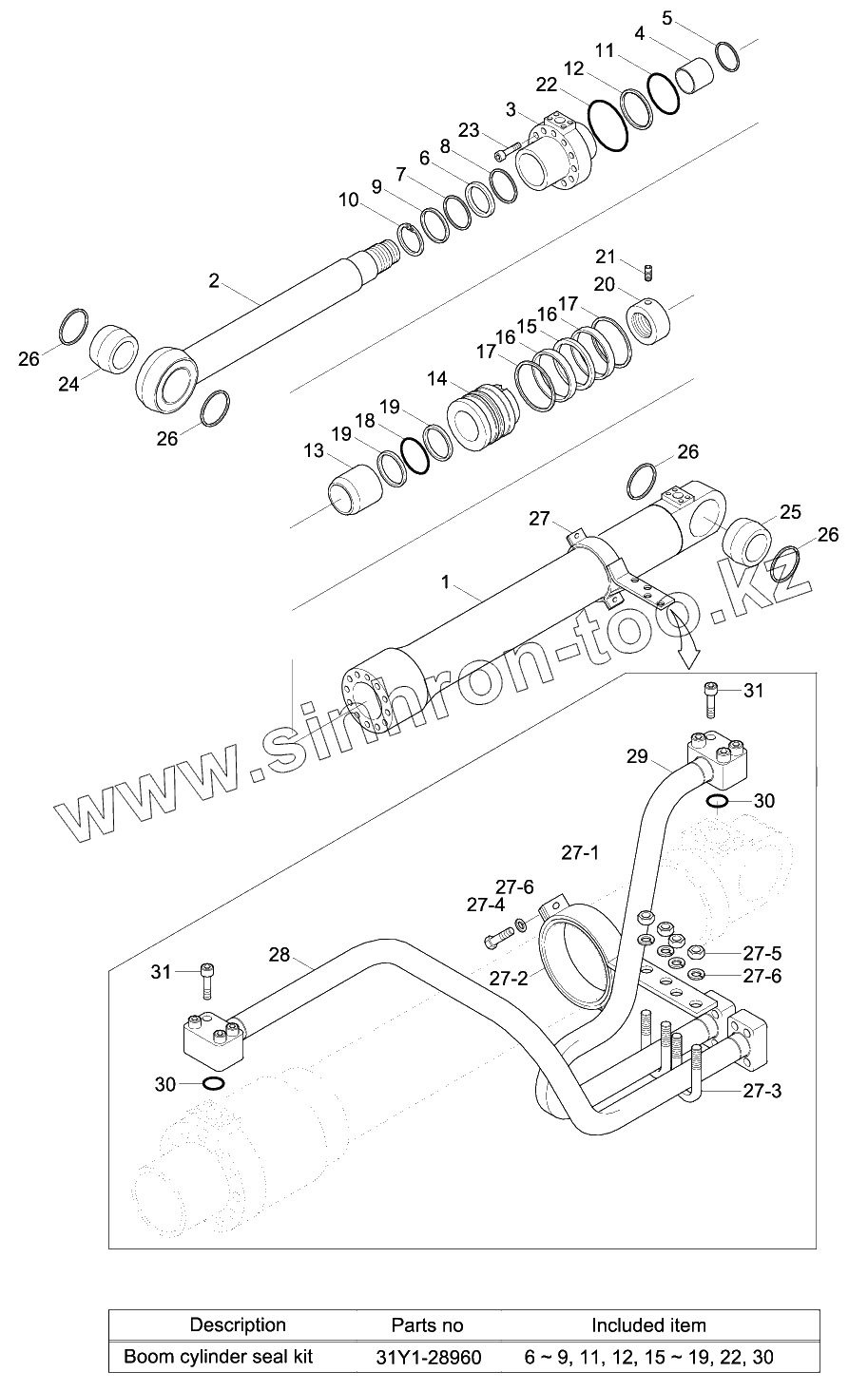 Каталог запасных частей к технике: Hyundai R210W-9. BOOM CYLINDER